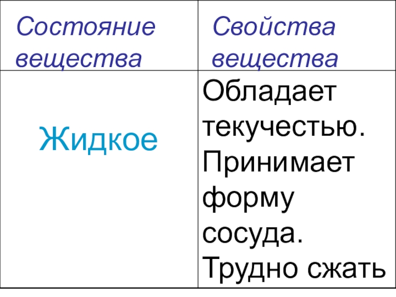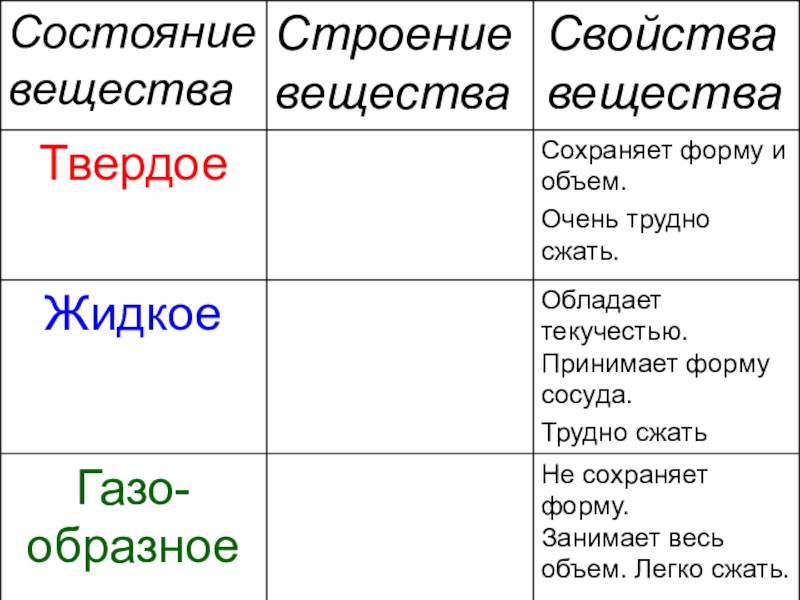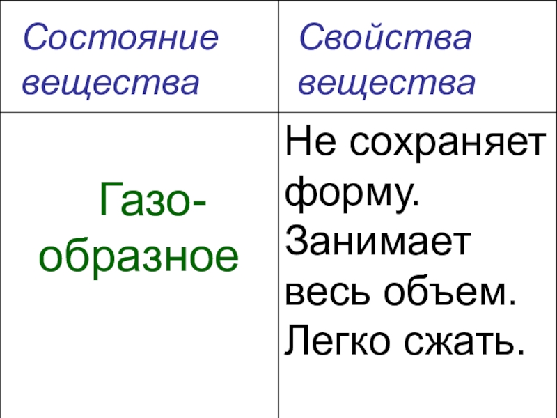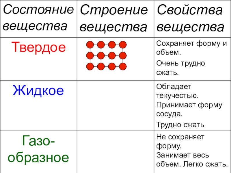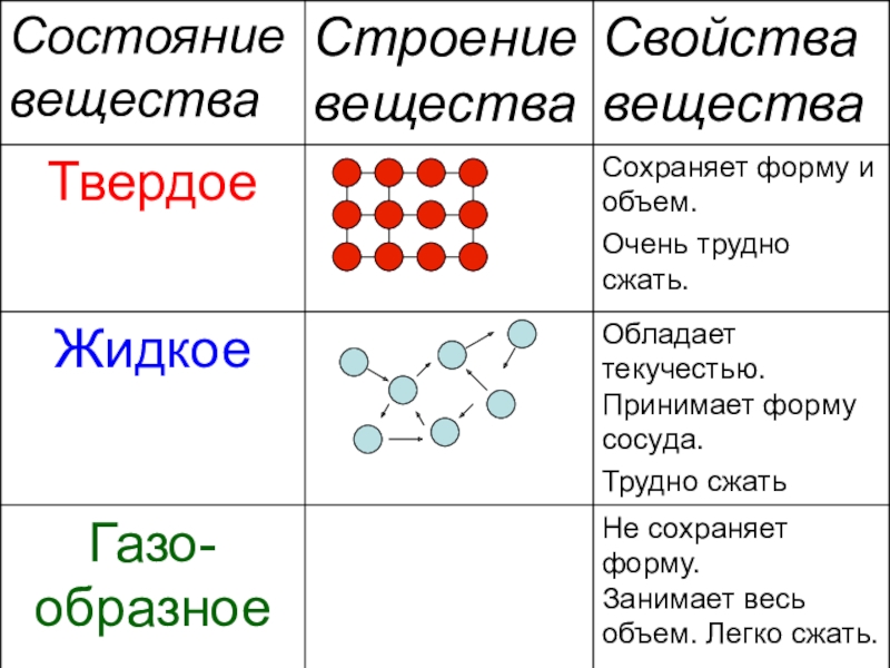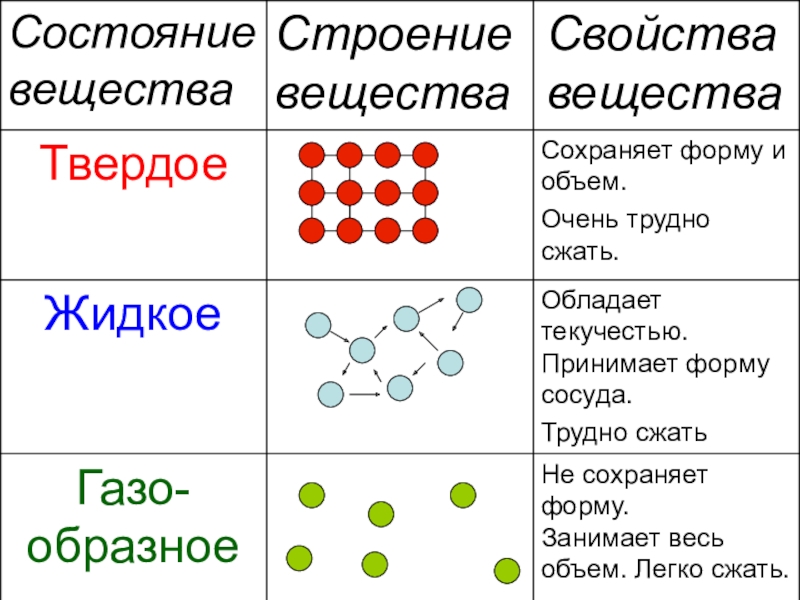 Состояние веществаСвойства вещества