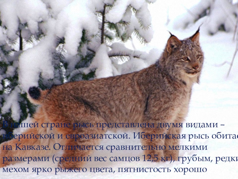 Слайд 3В нашей стране рысь представлена двумя видами – иберийской и евроазиатской.