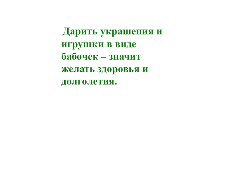 Слайд 18 Дарить украшения и игрушки в виде бабочек – значит желать здоровья