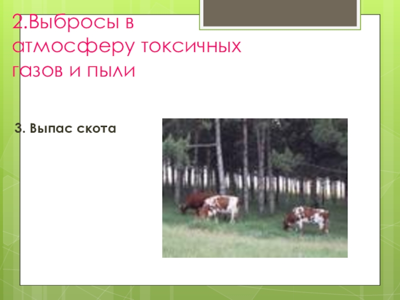 2.Выбросы в атмосферу токсичных газов и пыли 3. Выпас скота