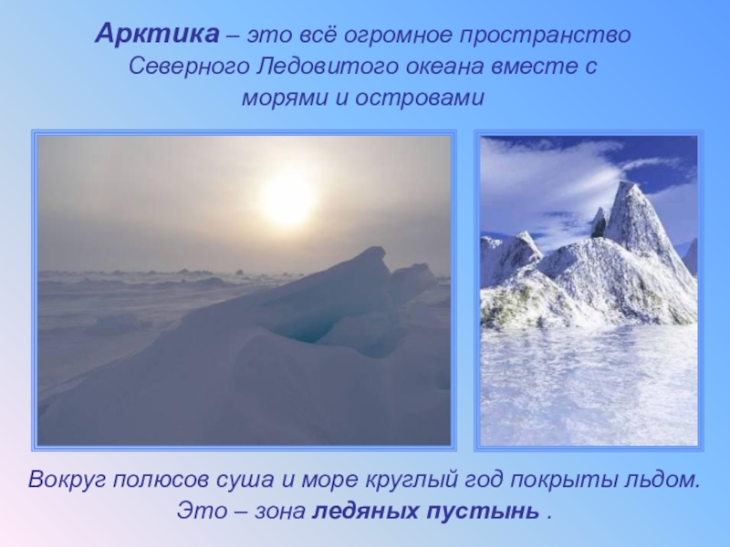 Вокруг полюсов суша и море круглый год покрыты льдом.