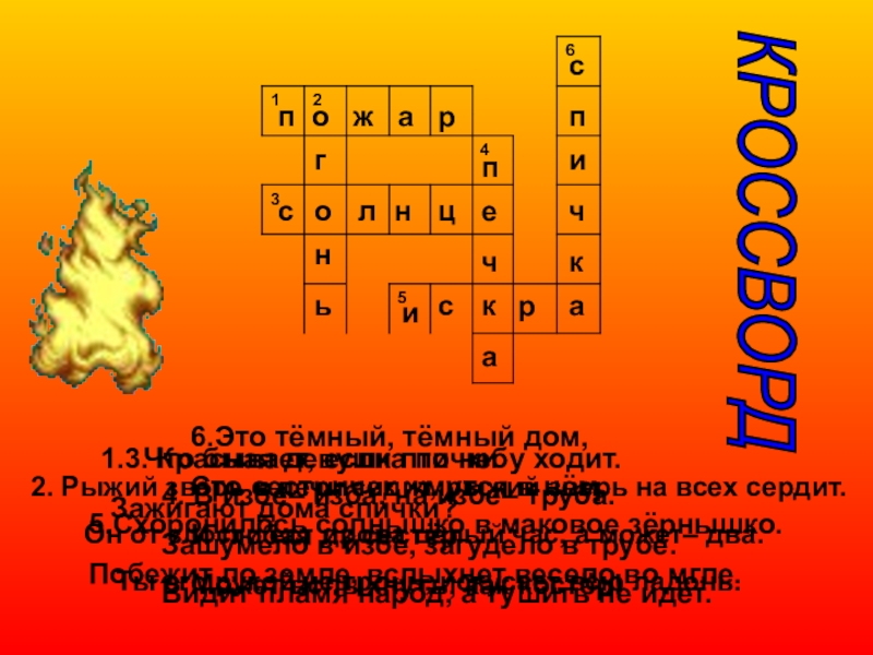 2. Рыжий зверь в печи сидит, рыжий зверь на всех сердит.