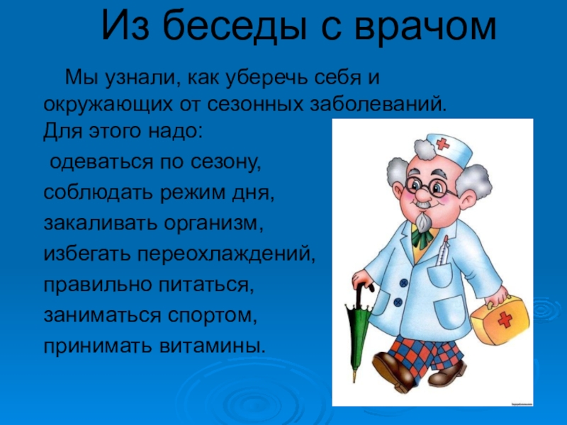 себя и окружающих от сезонных заболеваний. Для этого надо: