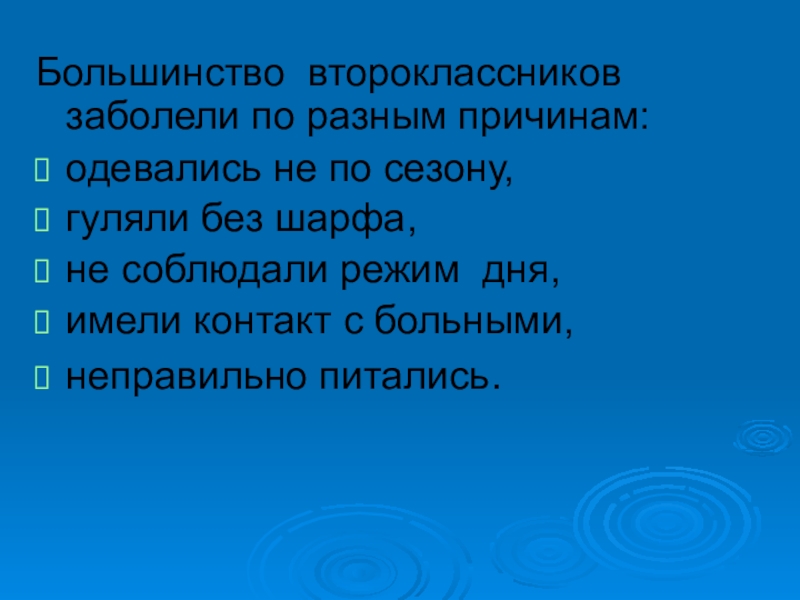 Слайд 18Большинство второклассников заболели по разным причинам: