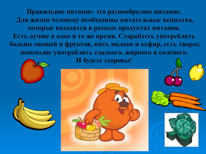 больше овощей и фруктов, пить молоко и кефир, есть творог,