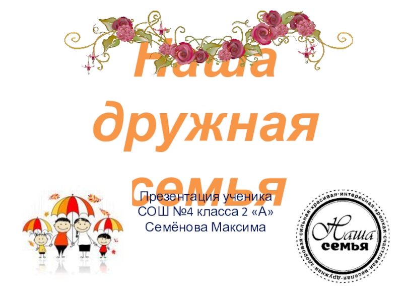 Наша дружная семьяПрезентация ученика СОШ №4 класса 2 «А»Семёнова Максима