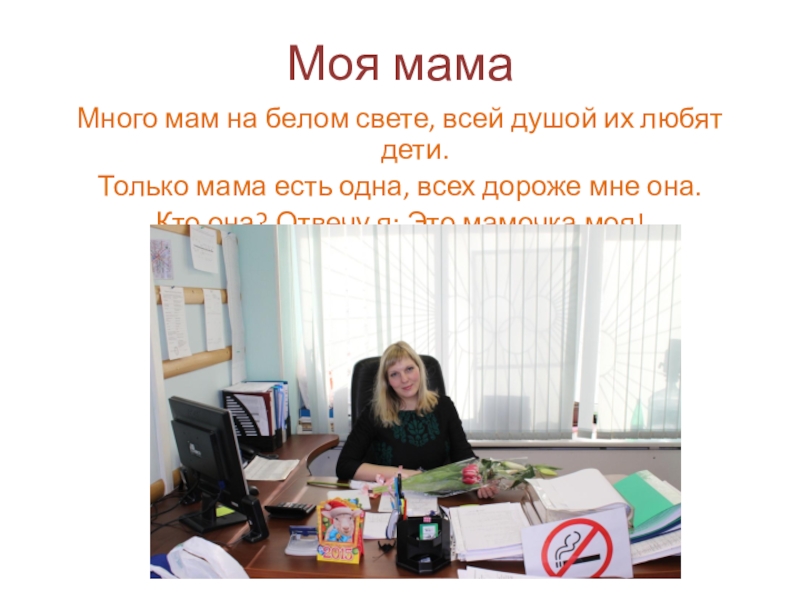 Моя мамаМного мам на белом свете, всей душой их любят дети.Только мама есть одна, всех дороже мне