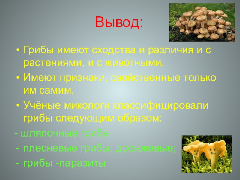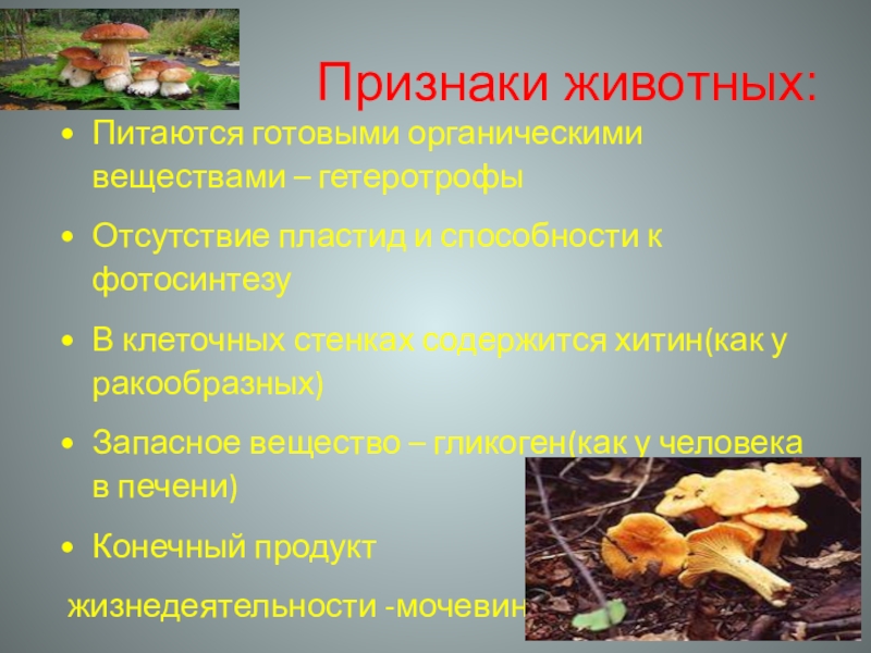 Грибы имеют сходства и различия и с растениями, и с животными.