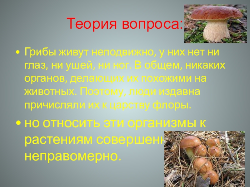 Грибы живут неподвижно, у них нет ни глаз, ни ушей, ни