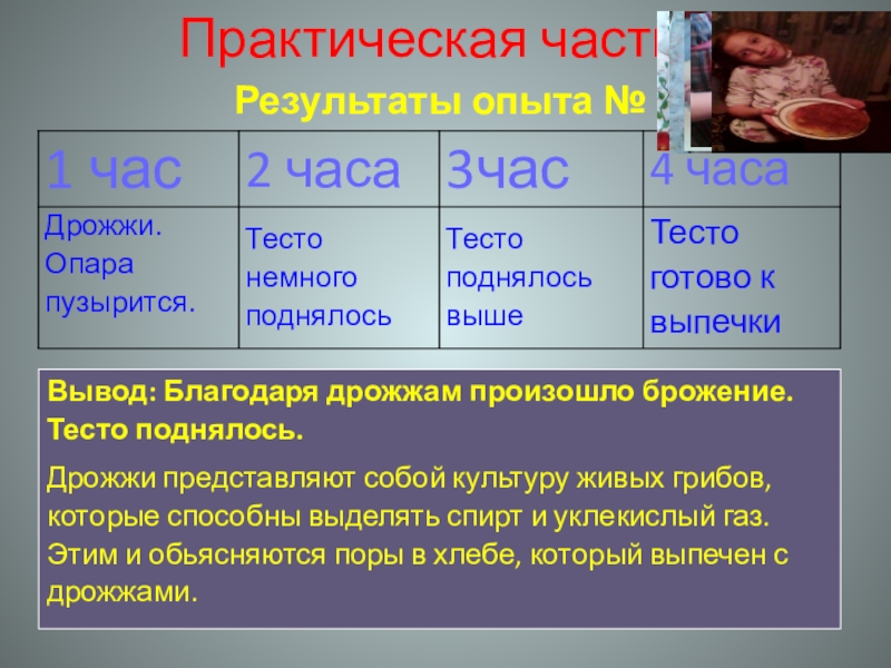 Вывод: Благодаря дрожжам произошло брожение. Тесто поднялось.