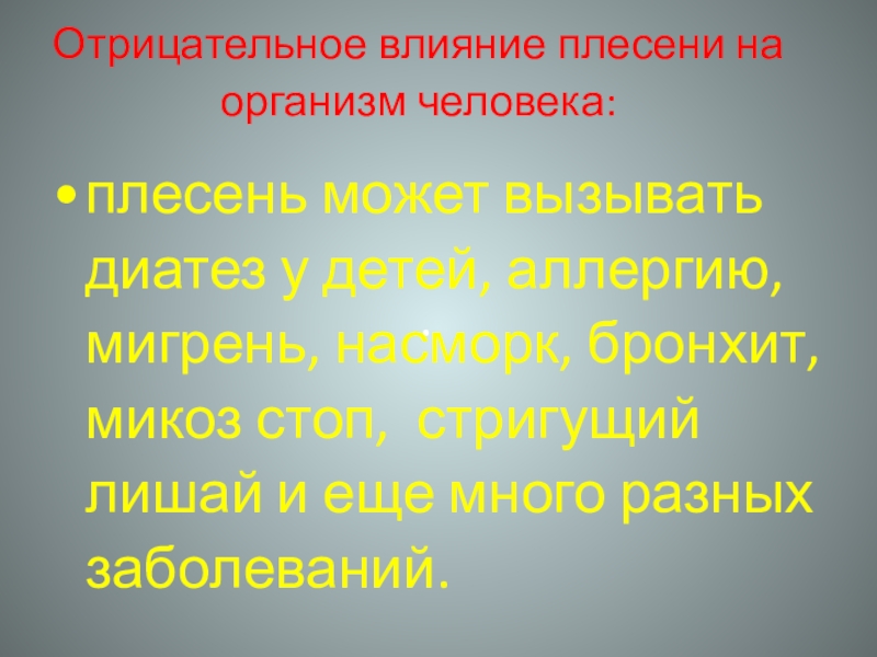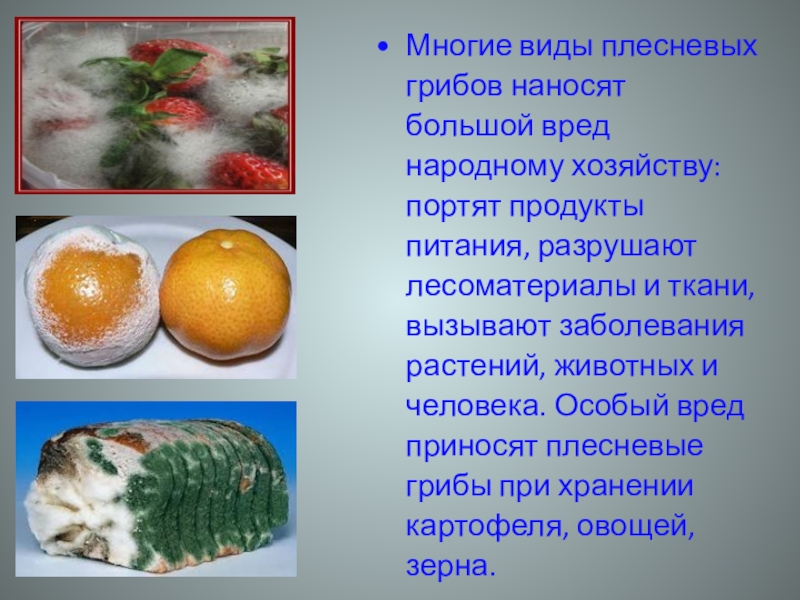 Многие виды плесневых грибов наносят большой вред народному хозяйству: портят продукты
