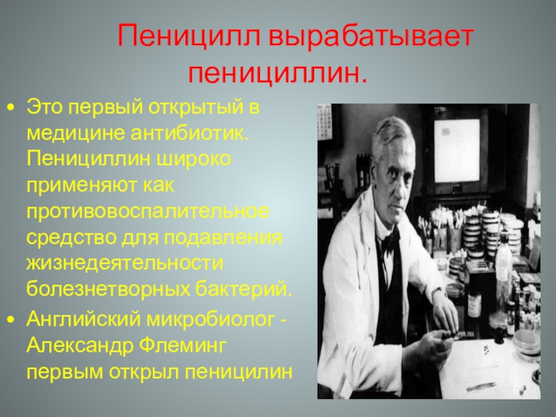 Слайд 20 Пеницилл вырабатывает пенициллин.