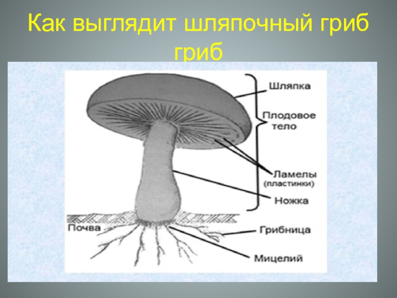 Вегетативное тело гриба представляет собой мицелий (грибницу), состоящий из нитей – гифов. Это признак, свойственный только грибам.