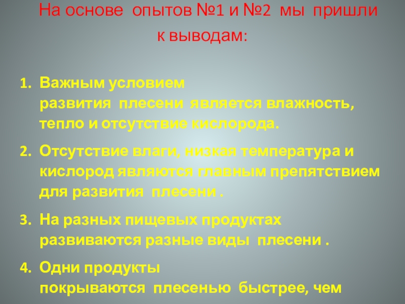 Слайд 28 На основе опытов №1 и №2 мы пришли к выводам: