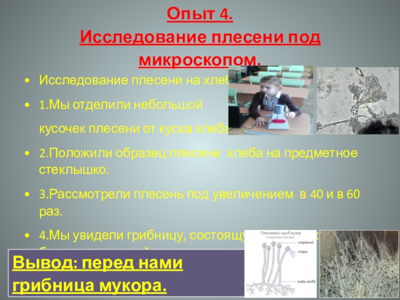 3.Рассмотрели плесень под увеличением в 40 и в 60 раз.