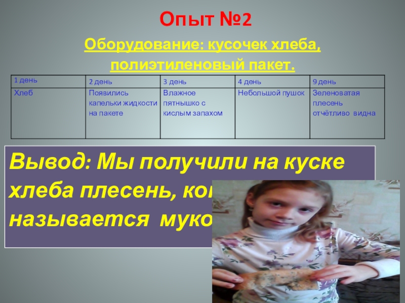 Оборудование: кусочек хлеба, полиэтиленовый пакет.