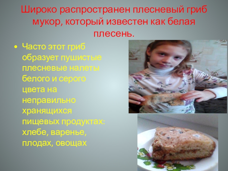 Слайд 17Широко распространен плесневый гриб мукор, который известен как белая плесень.
