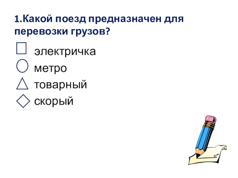 Слайд 111.Какой поезд предназначен для перевозки грузов?