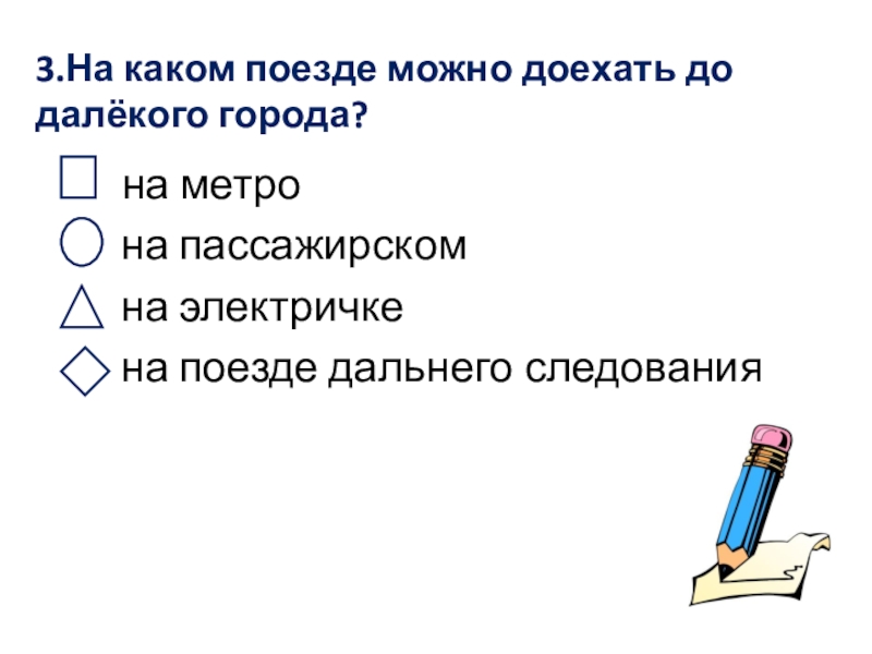3.На каком поезде можно доехать до далёкого города?     на метро