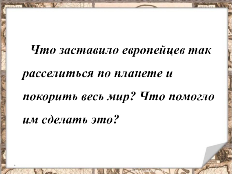 1. Что произошло в истории Европы, что заставило европейцев расселяться и покорять мир?