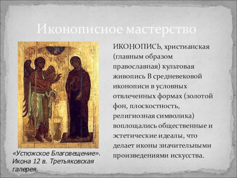 «Устюжское Благовещение». Икона 12 в. Третьяковская галерея.