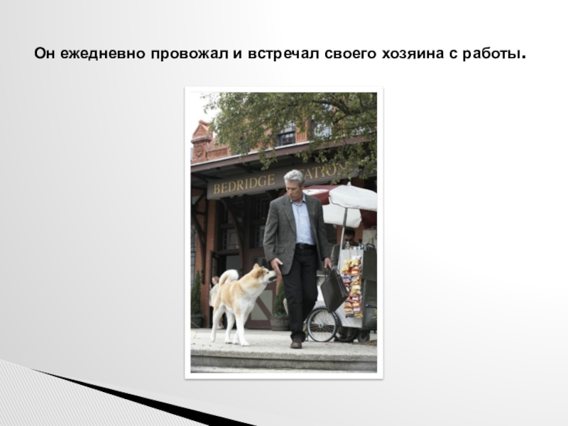 Слайд 12Он ежедневно провожал и встречал своего хозяина с работы.