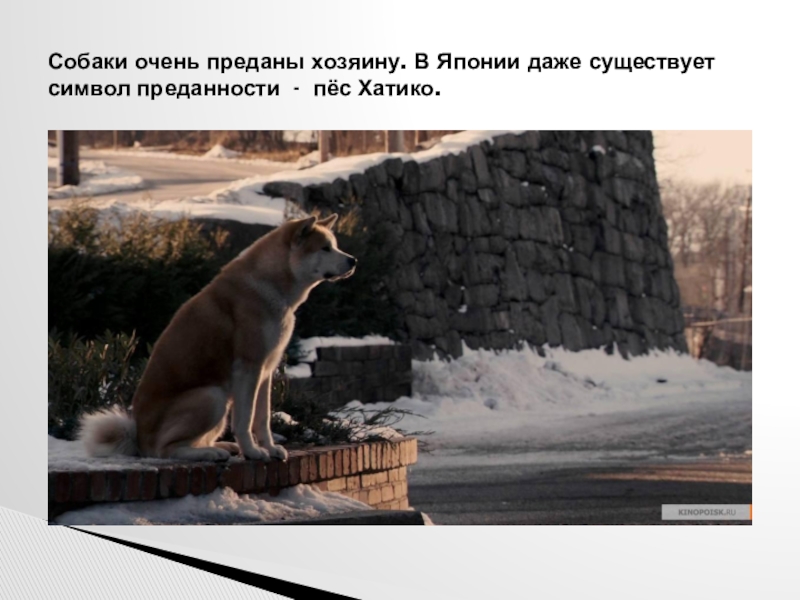 Слайд 11Собаки очень преданы хозяину. В Японии даже существует символ преданности -