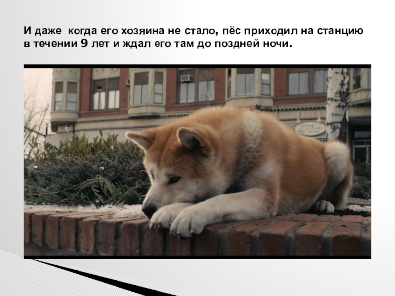 Слайд 13И даже когда его хозяина не стало, пёс приходил на станцию