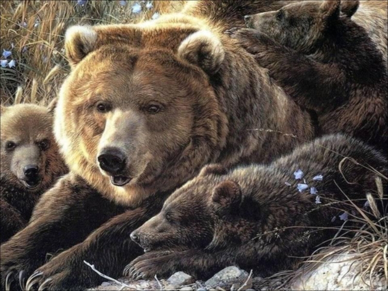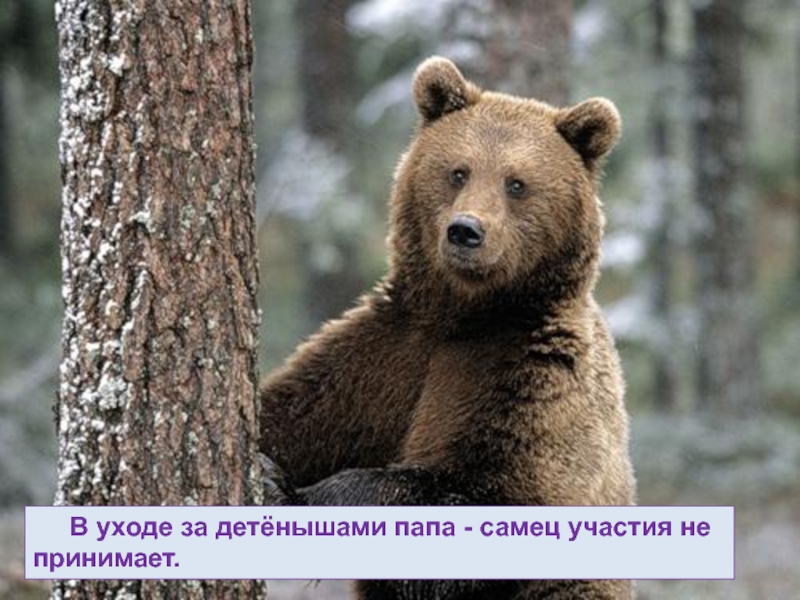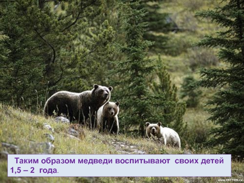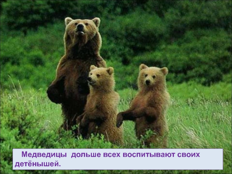 Слайд 35 Медведицы дольше всех воспитывают своих детёнышей.