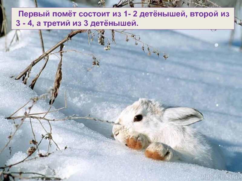 Слайд 19 Первый помёт состоит из 1- 2 детёнышей, второй из