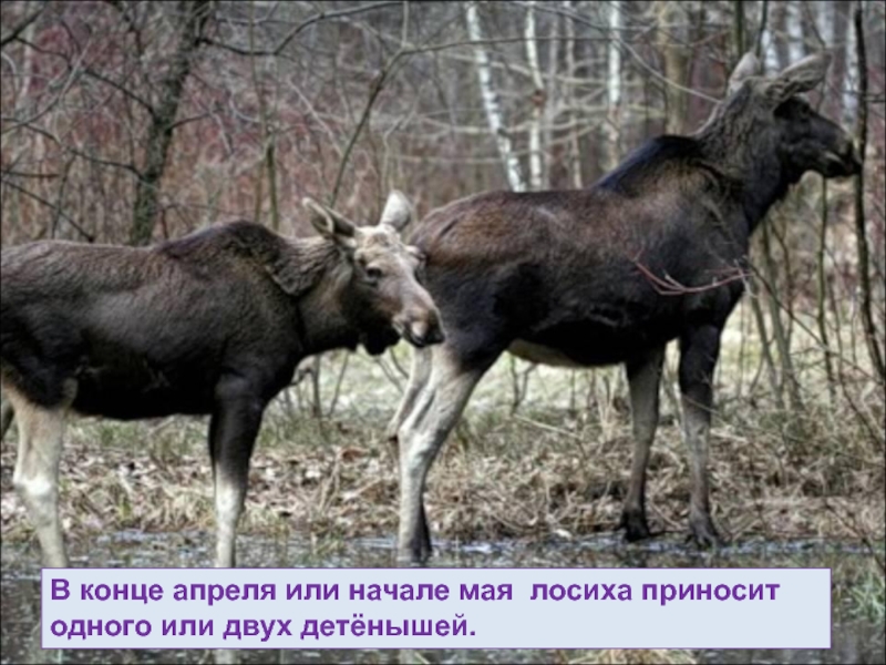 Слайд 59В конце апреля или начале мая лосиха приносит