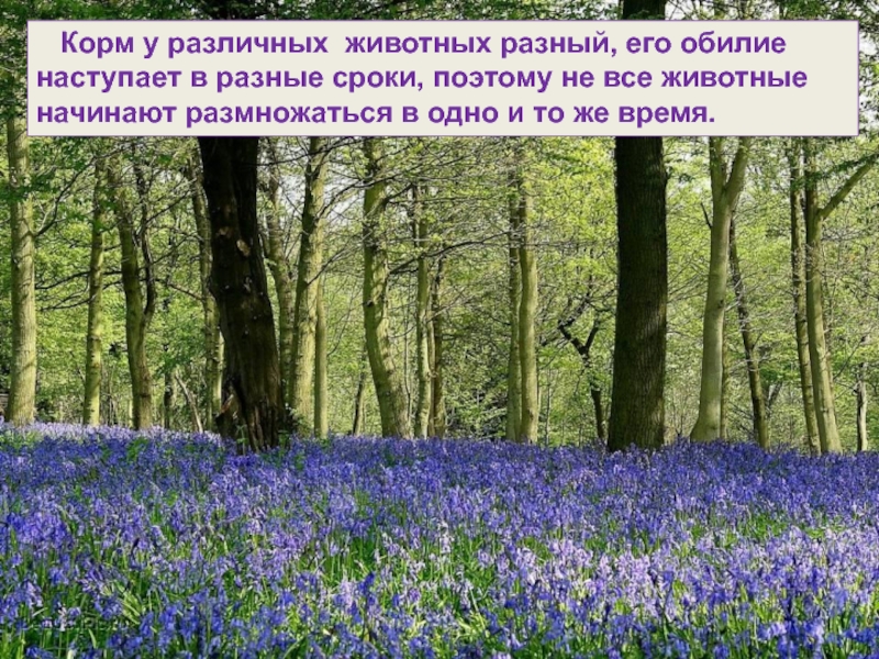 Слайд 8 Корм у различных животных разный, его обилие наступает в