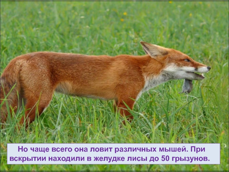 Слайд 49 Но чаще всего она ловит различных мышей. При вскрытии
