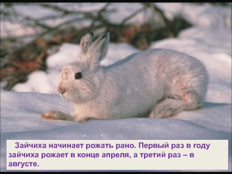 Слайд 18 Зайчиха начинает рожать рано. Первый раз в году