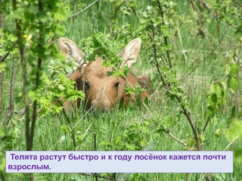 Слайд 62 Телята растут быстро и к году лосёнок кажется почти