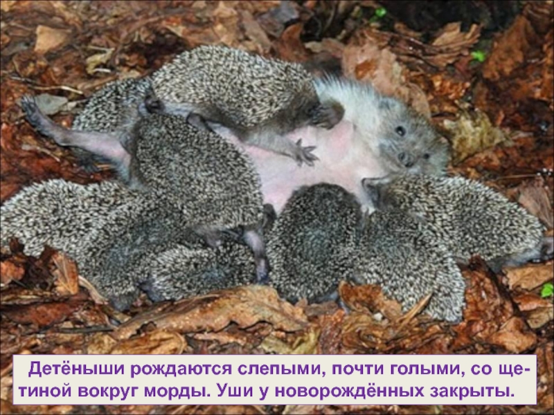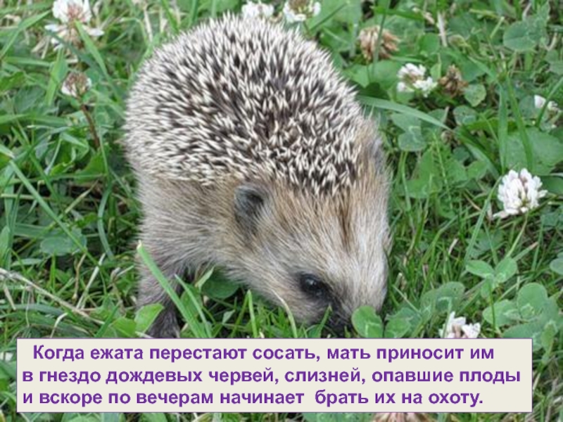 Слайд 16 Когда ежата перестают сосать, мать приносит им