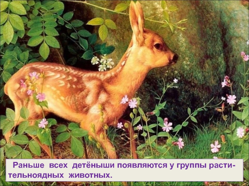 Слайд 9 Раньше всех детёныши появляются у группы расти-