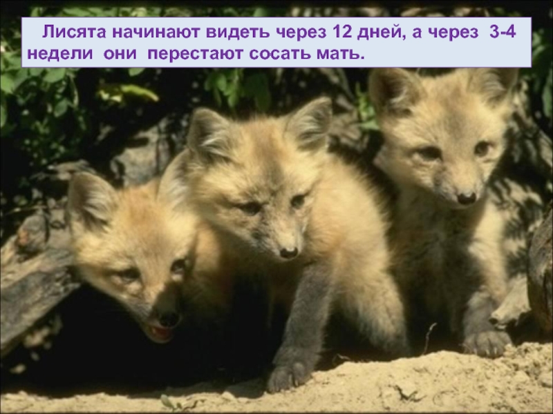 Слайд 51 Лисята начинают видеть через 12 дней, а через 3-4