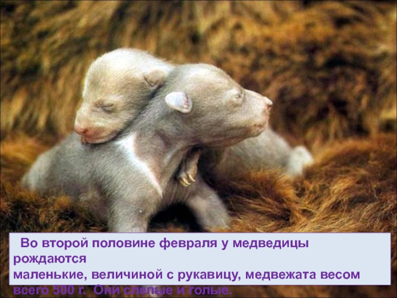 Слайд 38 Во второй половине февраля у медведицы рождаются