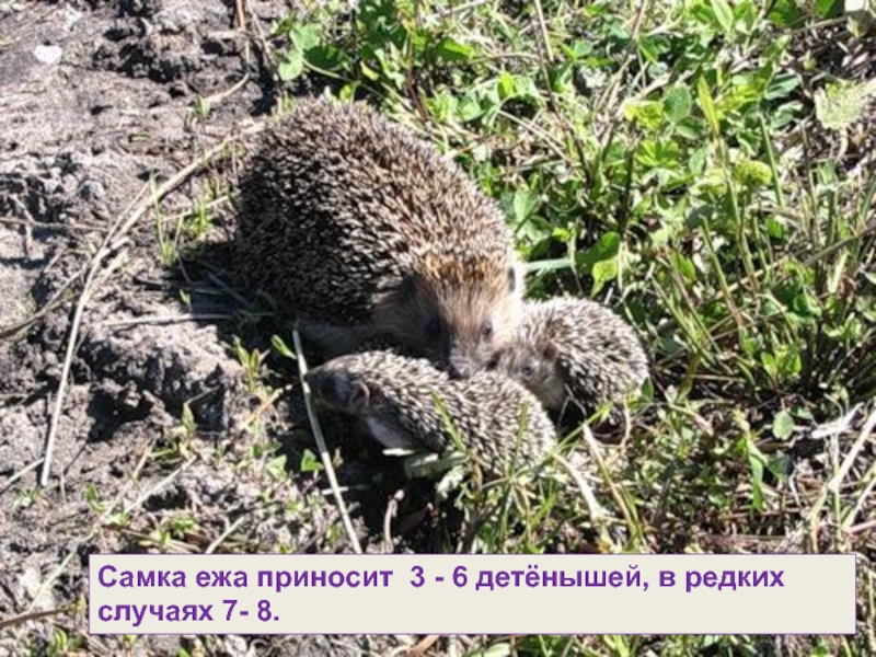 Слайд 14Самка ежа приносит 3 - 6 детёнышей, в редких