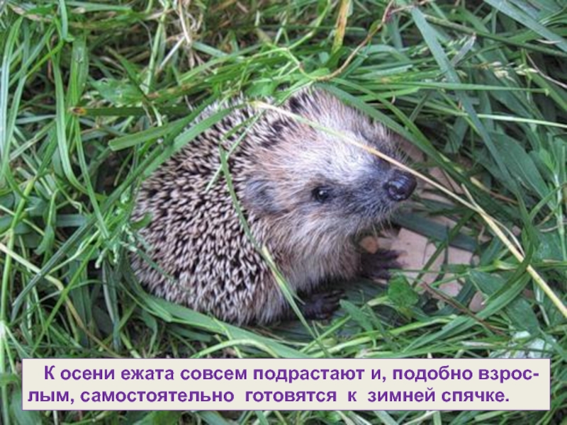 Слайд 17 К осени ежата совсем подрастают и, подобно взрос-