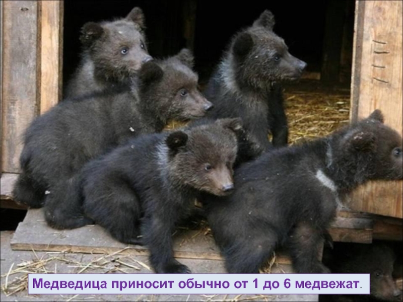 Слайд 36Медведица приносит обычно от 1 до 6 медвежат.