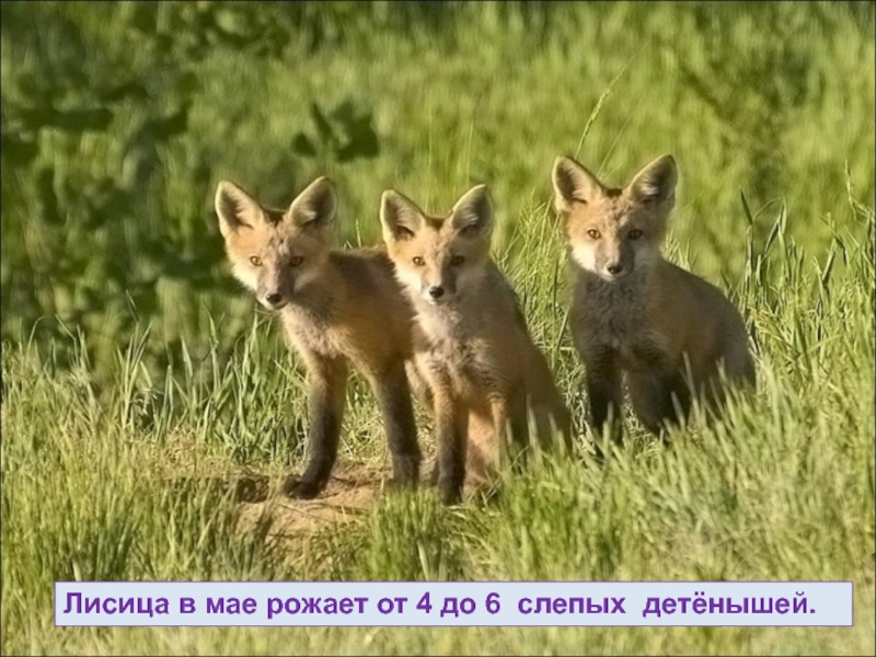 Слайд 50Лисица в мае рожает от 4 до 6 слепых детёнышей.