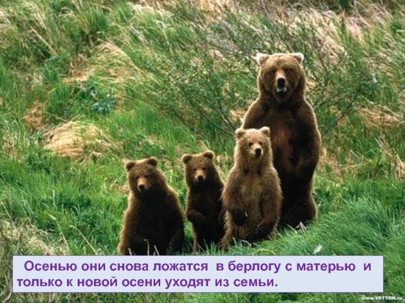 Слайд 42 Осенью они снова ложатся в берлогу с матерью и