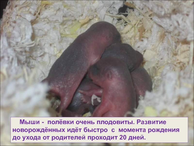 Слайд 11 Мыши - полёвки очень плодовиты. Развитие новорождённых идёт быстро