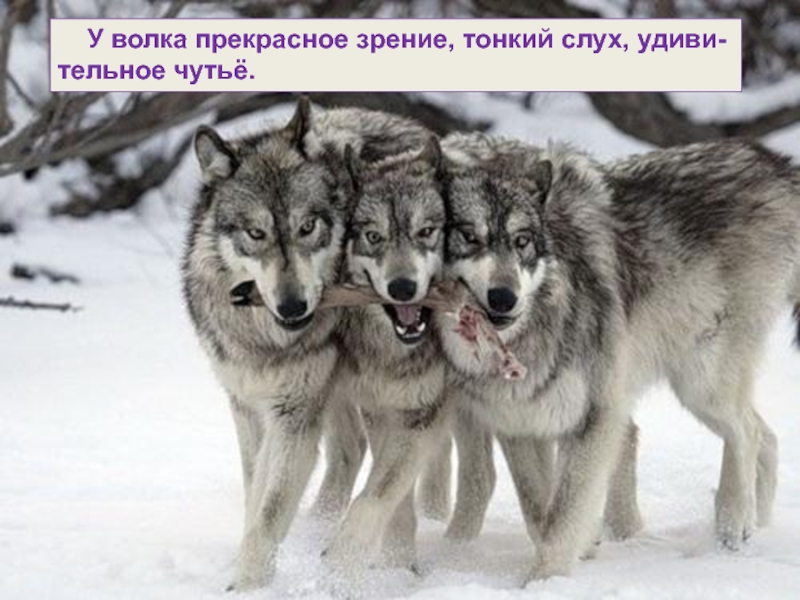 Слайд 25 У волка прекрасное зрение, тонкий слух, удиви-