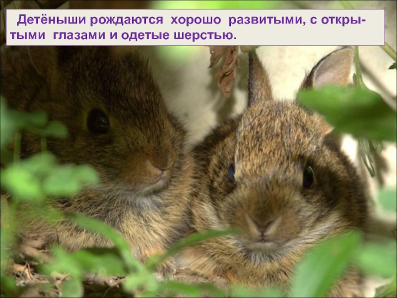 Слайд 20 Детёныши рождаются хорошо развитыми, с откры-тыми глазами и одетые шерстью.
