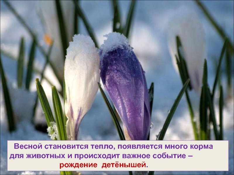 Слайд 7 Весной становится тепло, появляется много корма