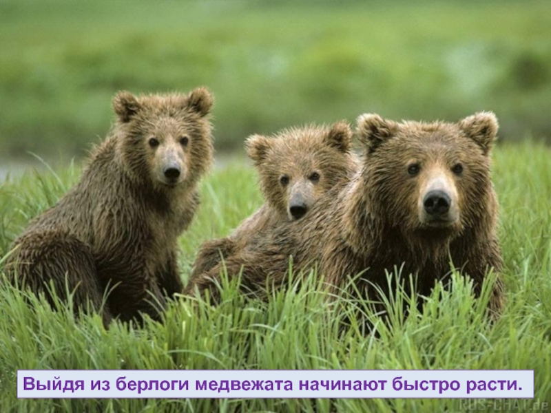 Слайд 41Выйдя из берлоги медвежата начинают быстро расти.