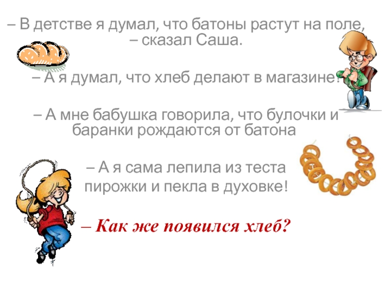 Древние люди заметили, что брошенное в землю зерно возвращает несколько зерен, что на рыхлой и влажной земле вырастает больше зерен. Долгое время люди употребляли в пищу зерна в сыром виде, затем научились растирать их между камнями, получая крупу, и варить ее. Так появились первые жернова, первая мука, первый хлеб. Первый хлеб имел вид жидкой каши. Она и является прародительницей хлеба.